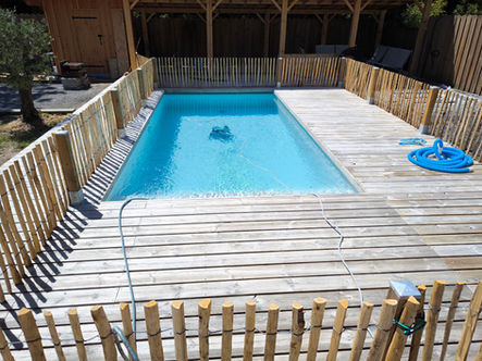 Découvrez notre projet de rénovation réalisé dans le médoc: Rénovation complète du bassin avec la pose d'une membrane armée assurant une étanchéité durable et une excellente tenue dans le temps.